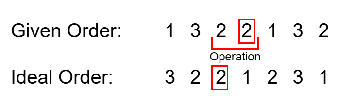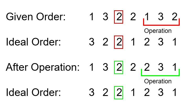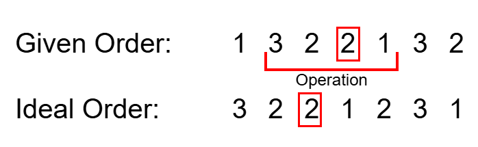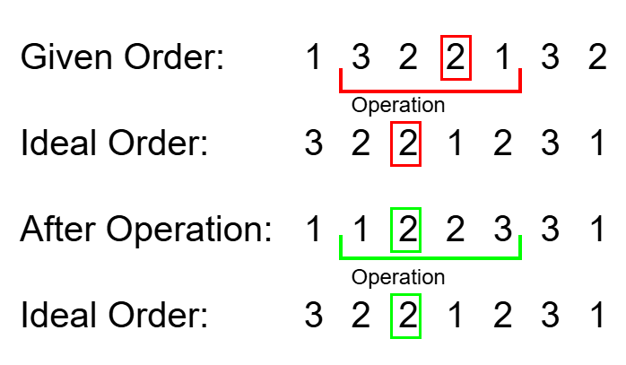 We can implement this by iterating through each cow to determine how many contributions each cow in the initial order makes.